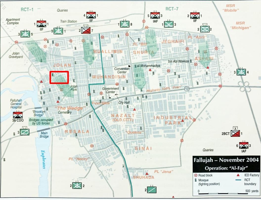 Insurgent forces had spent months preparing the city’s defenses. Fighters constructed fighting positions inside houses and mosques, cut passageways through walls between buildings known as “mouse holes,” and planted large numbers of improvised explosive devices along roads and inside structures. Snipers and machine gunners were positioned to control key intersections and rooftops, while barricades and destroyed vehicles were used to block major streets. Their strategy relied on ambushes, attrition, and forcing coalition troops into dangerous close-quarters combat within the dense urban environment.